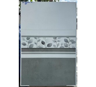 Gạch Ceramic, bề mặt phủ men mờ, màu xám vân xi măng, điểm họa tiết lá cây hiện đại, sang trọng