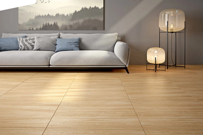 Chất liệu đá Porcelain, bề mặt mờ (Matt), màu nâu vàng nhạt, vân gỗ tự nhiên