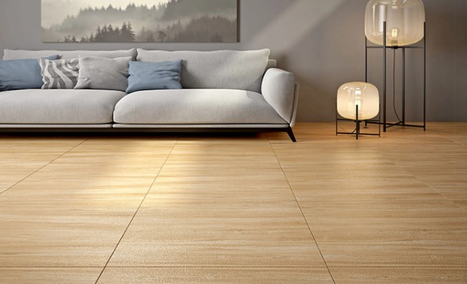 Chất liệu đá Porcelain, bề mặt mờ (Matt), màu nâu nhạt, vân gỗ tự nhiên