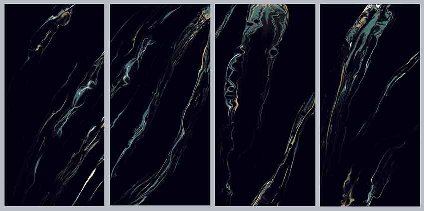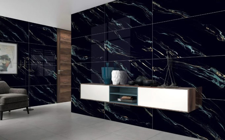 ► Hình ảnh phối cảnh Gạch Ấn Độ 60x120 Đen vân xanh vàng