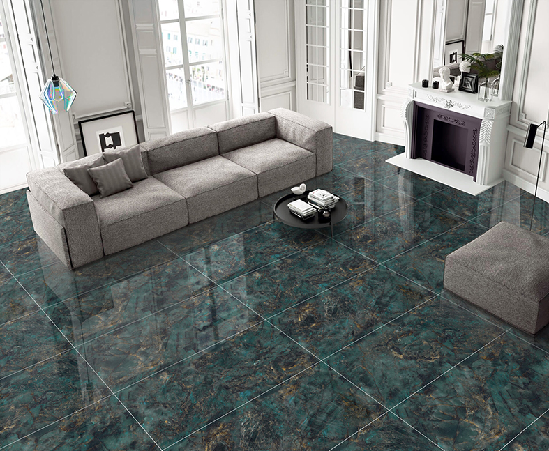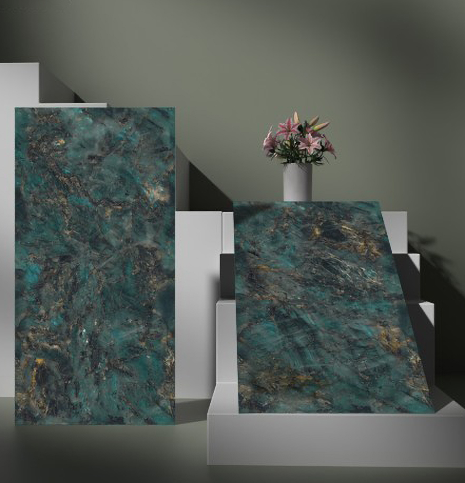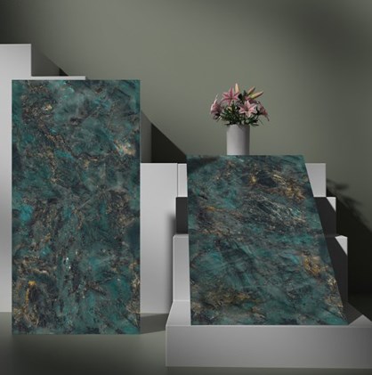 ► Hình ảnh phối cảnh Gạch Ấn Độ 60x120 Xanh ngọc vân đen vàng