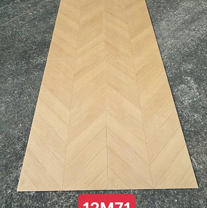Chất liệu đá Porcelain vân gỗ xương cá cao cấp, bề mặt nhám nhẹ (Matt)