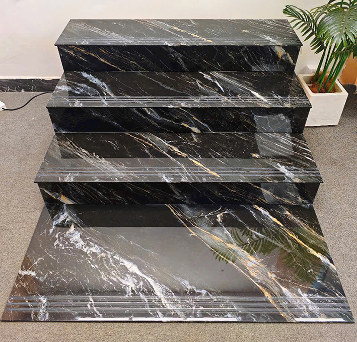 Đá Porcelain cao cấp, màu đen vân đá trắng vàng hiện đại