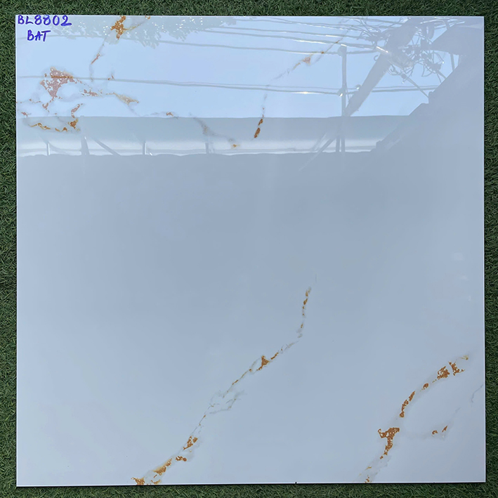 • Đá Porcelain, phủ men bóng, màu trắng vân nâu vàng sang trọng, hiện đại