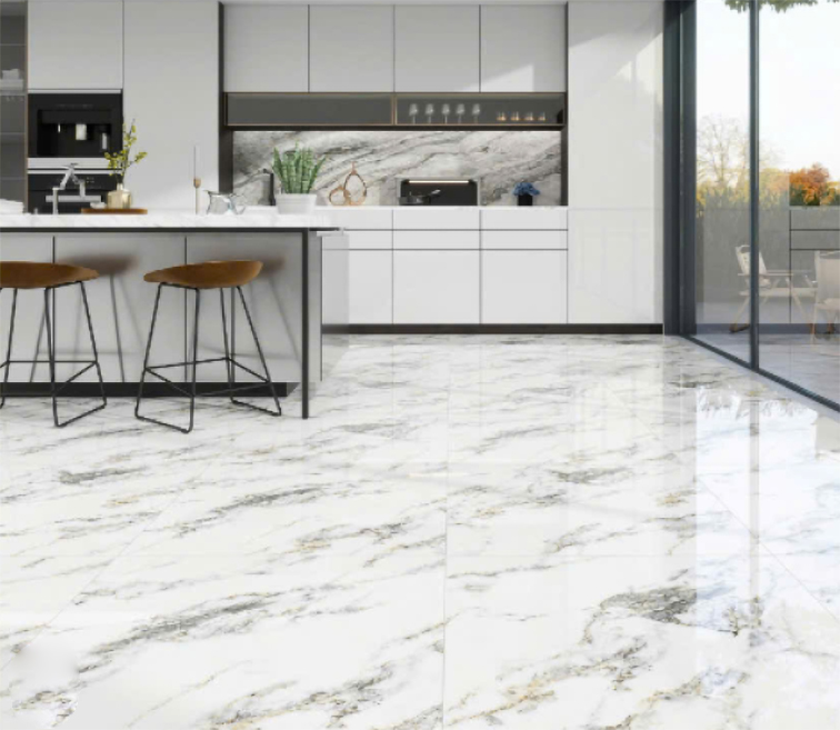 - Chất liệu đá Porcelain, bề mặt phủ men bóng hiện đại