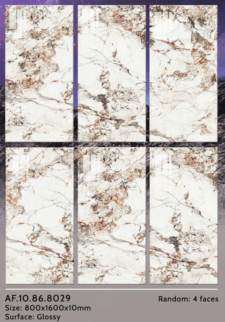 - Đá Porcelain cao cấp, màu trắng vân đá nâu đỏ hiện đại