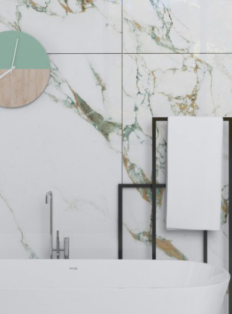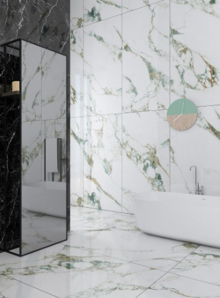 • Đá Porcelain cao cấp, màu trắng vân đá xanh rêu, nâu hiện đại