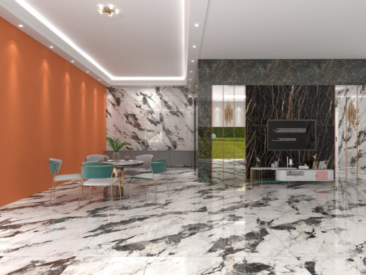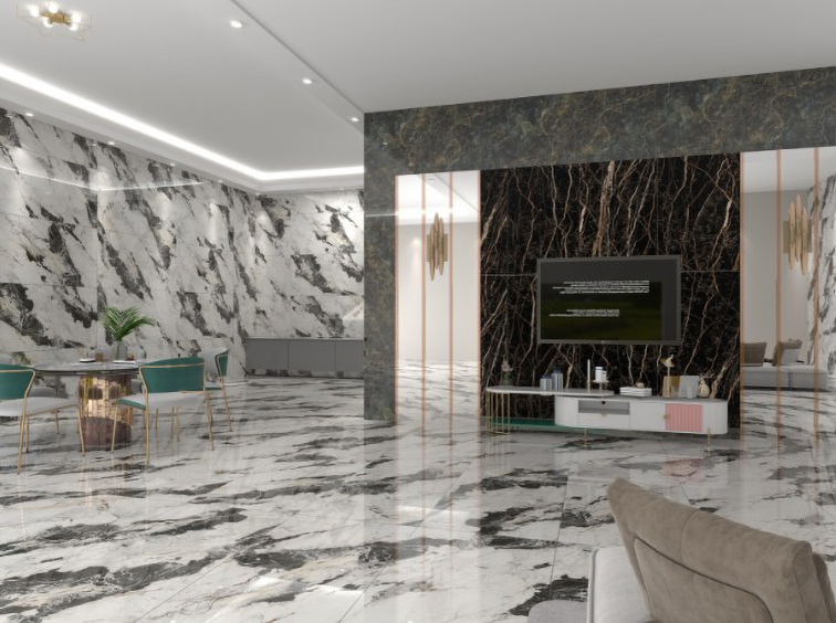 • Đá Porcelain cao cấp, màu trắng vân đá đen hiện đại