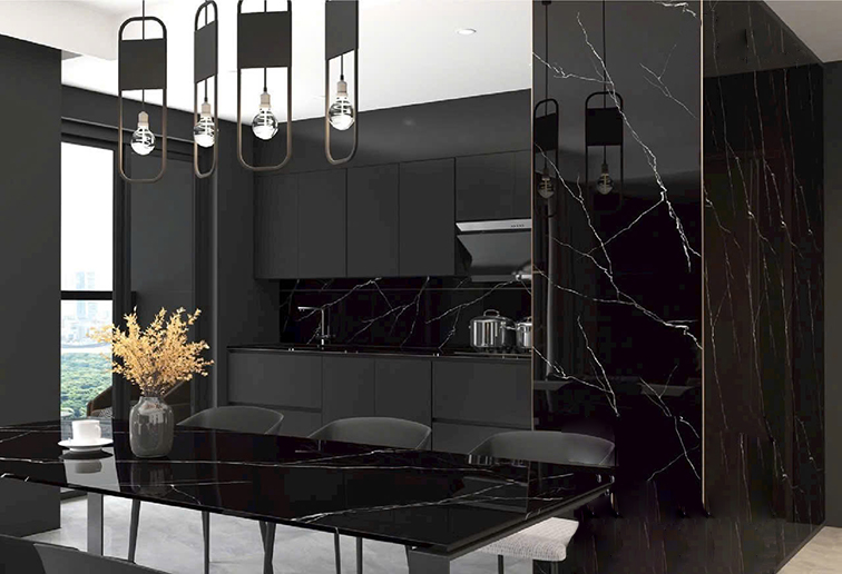 - Đá porcelain cao cấp, bề mặt phủ men bóng hiện đại