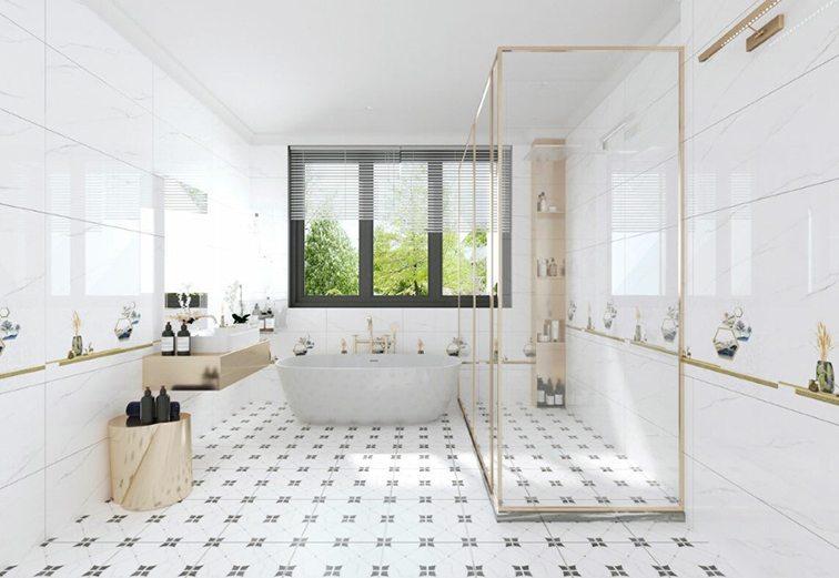 - Màu trắng vân khói xám nhạt, điểm họa tiết bình bông độc đáo, sang trọng