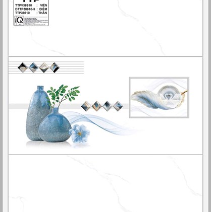 Màu trắng vân khói, điểm họa tiết bình bông xanh đơn giản, sang trọng