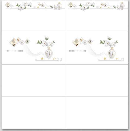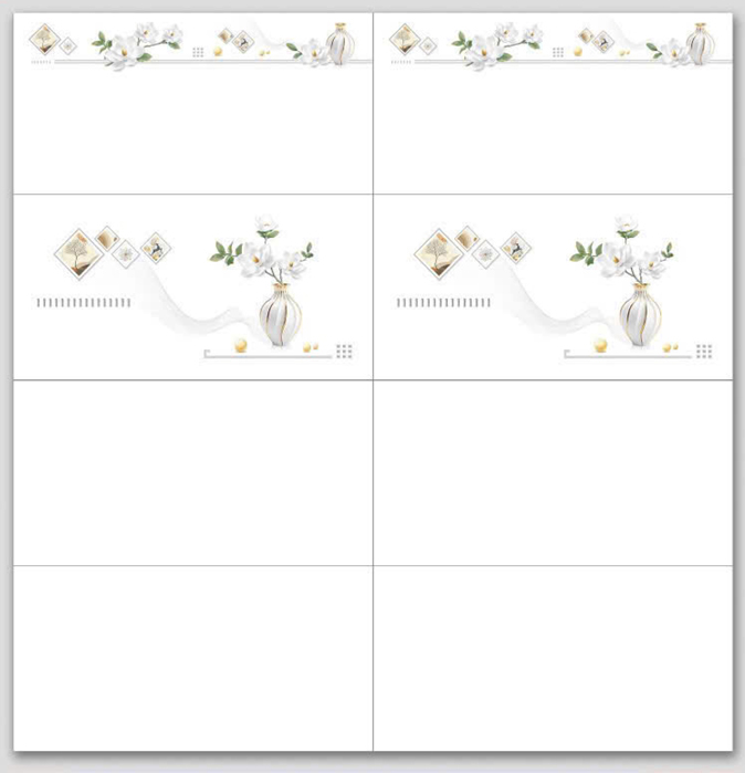 Màu trắng trơn, điểm họa tiết bình bông trắng, viền họa tiết bông trắng tinh tế, sang trọng
