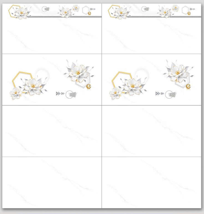 Màu trắng vân khói, điểm họa tiết bông trắng, viền họa tiết bông trắng tinh tế, sang trọng