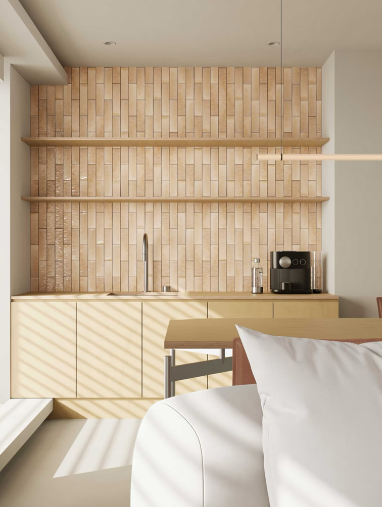 • Gạch 7.5x30 phù hợp ốp tường phòng khách, ốp bếp, quầy lễ tân, quán cafe, showroom, spa, ốp điểm nhấn trang trí,...