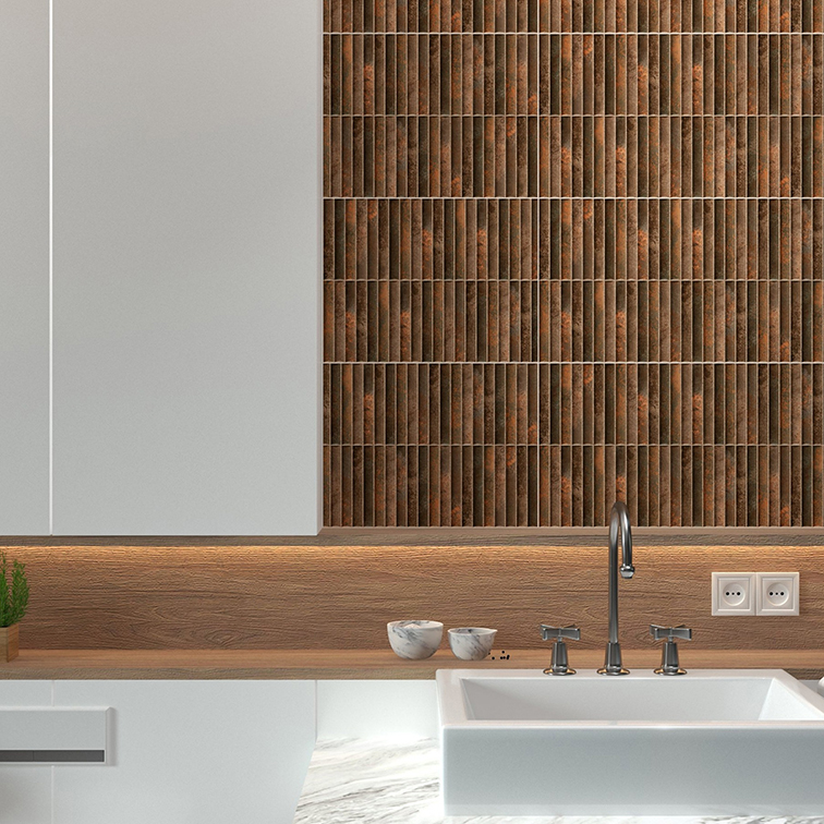 - Màu nâu cam loang, họa tiết hình que độc đáo, hiện đại, đẳng cấp