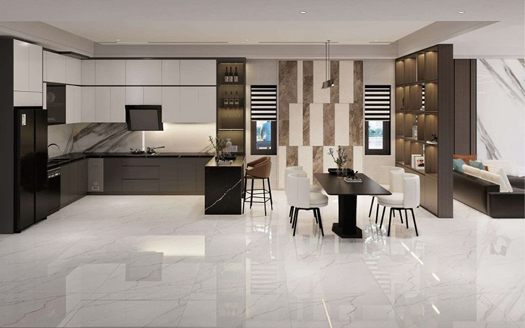 - Đá Porcelain cao cấp, bề mặt siêu bóng kính toàn phần hiện đại